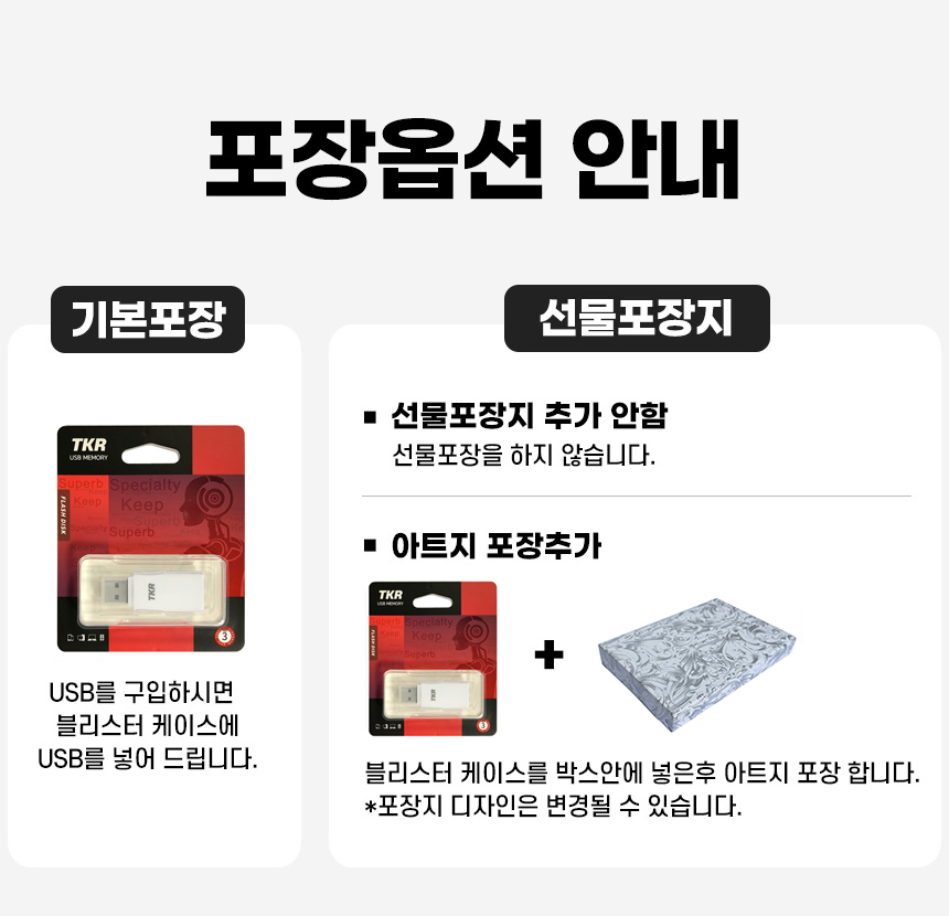 • ÆÐŰÁö, ¼±¹° »óÀÚ µî ¿É¼ÇÀ» Ãß°¡ÇÏ¿© ¹è¼Û ÈÄ ¹ÝǰµÈ »óǰÀÇ ¼±¹°»óÀÚ°¡ ÈѼյǾú°Å³ª µ¿ºÀÇÏÁö ¾ÊÀº °æ¿ì, ÇØ´ç ºñ¿ë °øÁ¦ ÈÄ È¯±ÞµÉ ¼ö ÀÖ½À´Ï´Ù.